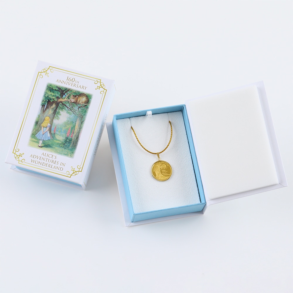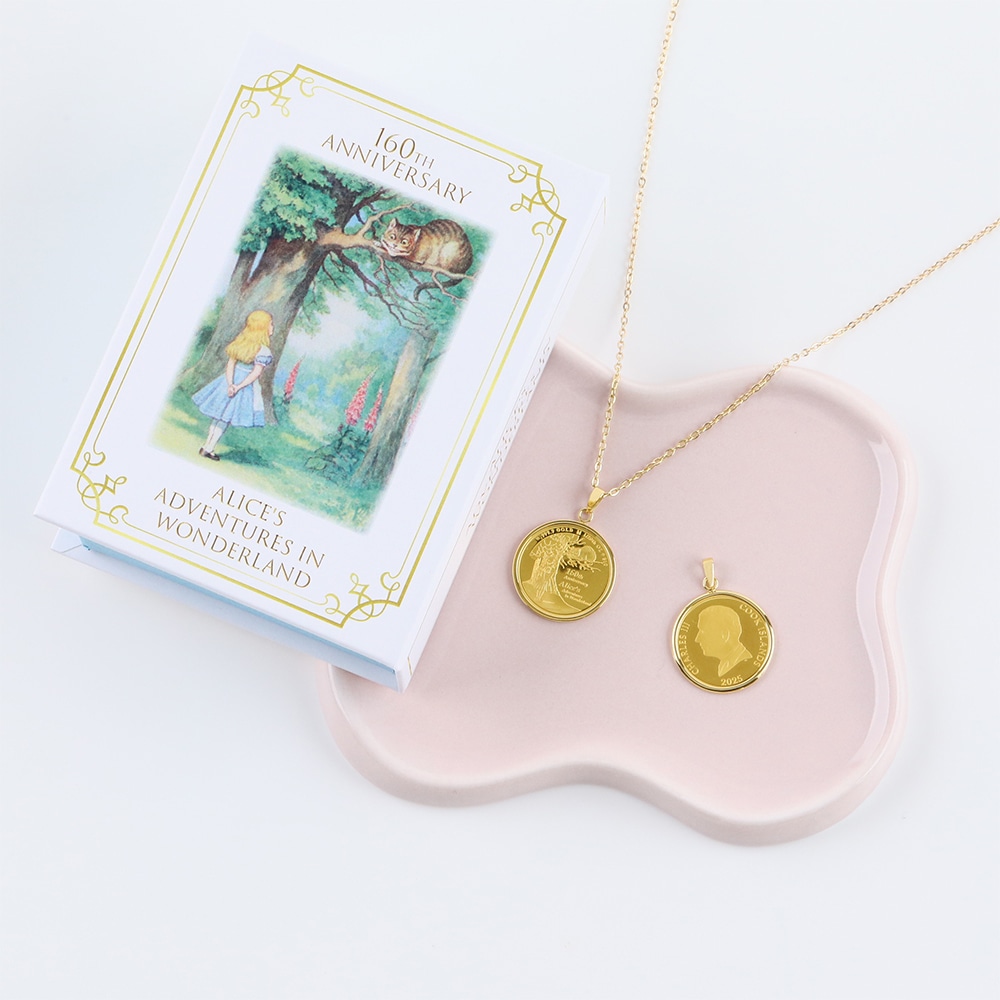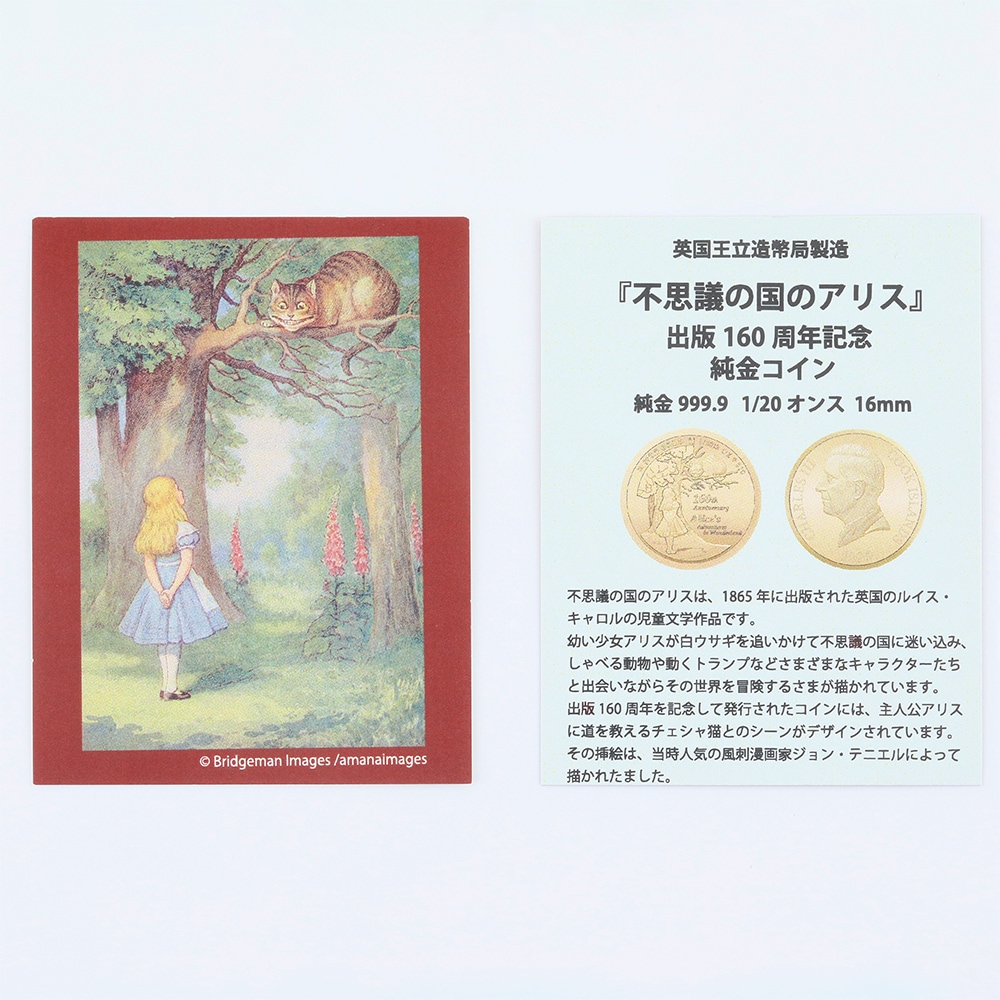 主人公アリスに道を教えるチェシャ猫とのシーンがデザインされています。