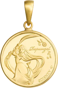 ラプンツェルの物語を刻んだ純金メダルは、上品で特別なアクセサリーとしても楽しめます。