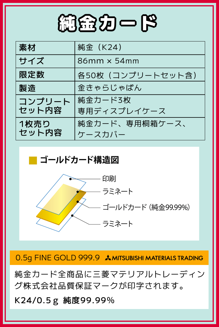 コンプリートセットの純金カードは、